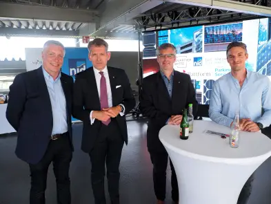 Zahlreiche Mitglieder:innen der stp*Plattform und geladene Gäste der NID genossen den phantastischen Ausblick, der sich – bei bestem Wetter – aus der obersten Ebene des Parkhauses an der Rennbahnstraße 1 bot. Sie nutzten, die Landeshauptstadt zu Füßen und bei Lounge-Musik von DJ James Illusion, die Gelegenheit, sich auszutauschen, neue Kontakte zu knüpfen und bis nach Sonnenuntergang gemeinsam zu feiern.