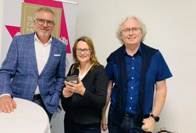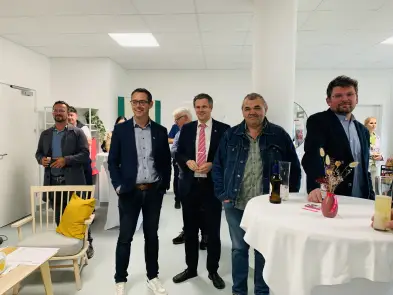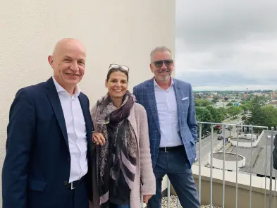 "Wir wollen den Bewohnern das Leben so angenehm wie möglich machen", betonte Geschäftsführer Christian Wagner beim Meet & Greet — in der Wohnanlage gibt es einen begrünten Innenhof mit Spielplatz, einen großzügig ausgestatteten Gemeinschaftsraum, eine Wohnservice-APP. Und die gesamte Anlage wird CO2-frei durch Erdwärmesonden und Photovoltaik mit Energie versorgt. Herbert Hetzel, CEO & Founder Beyond Carbon Energy und vom Wirtschaftsmagazin Businessart im vergangenen Jahr als nachhaltiger Gestalter ausgezeichnet, sollte den Gästen sein Konzept näher bringen, war aber leider kurzfristig verhindert.