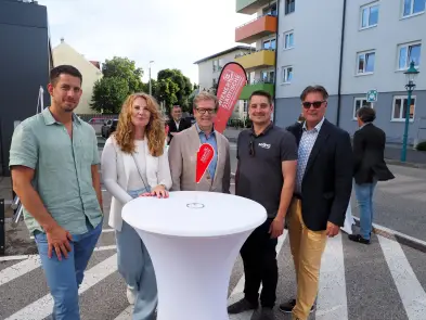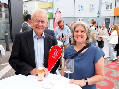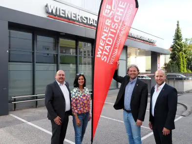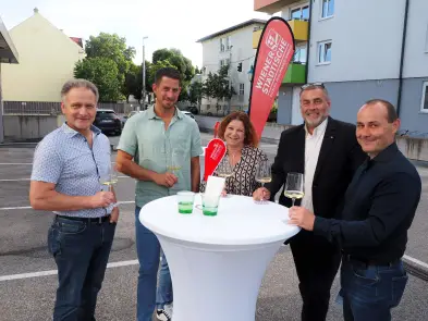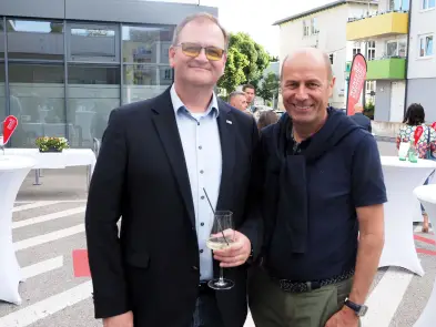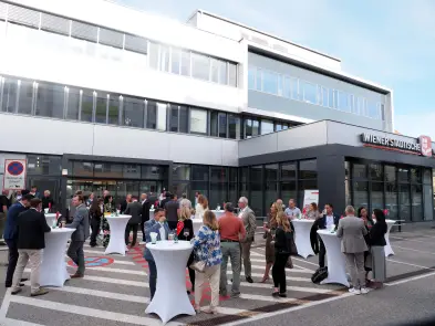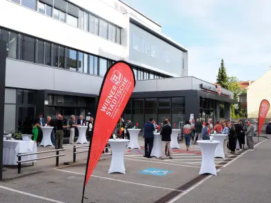 Die Begrüßung übernahmen stp*Plattform Obmann Dominik Mesner und Nikolas Ambrozy, Vertriebsleiter der Wiener Städtischen Versicherung - Landesdirektion Niederösterreich in Vertretung von Landesdirektor Wofgang Lehner. Durch das schöne Frühlingswetter fand das Come-together open air vor dem Eingangsbereich des tollen Versicherungsgebäudes statt.
