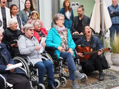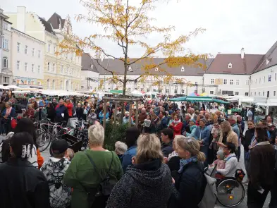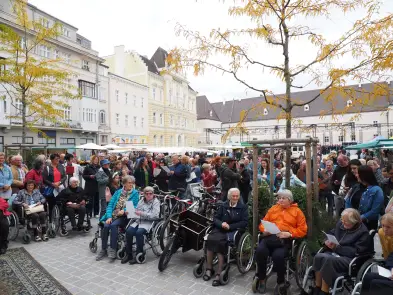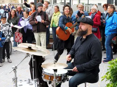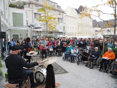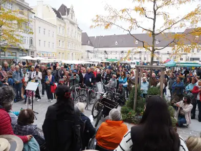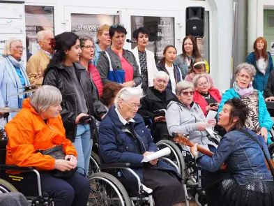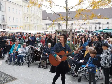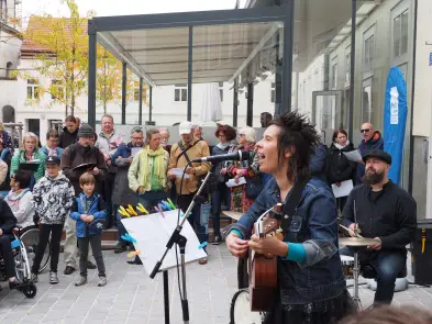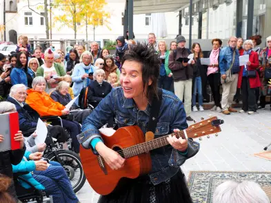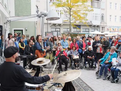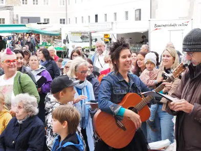 Am Samstag hat der Pop up Chor mit Eva Wannerer und ihren musikalischen Begleitern Jan Scheer und Mike Wait etwa mit Wolfgang Ambros' "Für immer jung" die Innenstadt beschallt, es traten aber auch zwei eingesungene "Profi-Chöre" auf, nämlich der Wödchor und der Chor vom Seniorenheim Elisabeth.