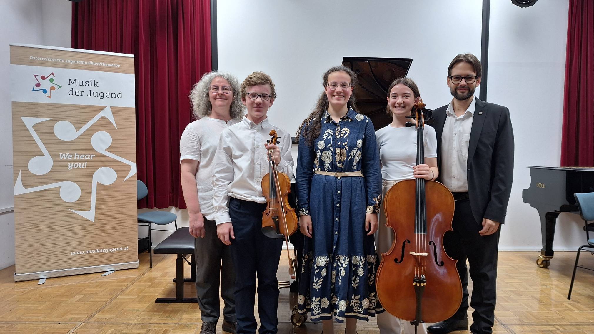 Besonders erfolgreich zeigten sich die Ensembles aus St. Pölten in der Kategorie Kammermusik. Das Duo Seveo in der Altersgruppe I überzeugte die Jury mit einer außergewöhnlichen Leistung und erhielt mit 94,00 Punkten den 1. Preis in Gold. Severin Altenburger (Violine) und Leo Bru-Aleksić (Violine) begeisterten mit ihrer harmonischen Zusammenarbeit und technischen Brillanz.