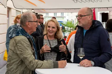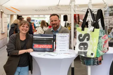 Speisen & Reisen — Sommerfeeling und Urlaubsflair im Gastgarten und im Srivisio Reisebüro mit exotischer Küche, tropischen Cocktails und persönlicher Sri Lanka Reiseberatung. Leider fiel um 17.00 Uhr die Tanzgruppe aus Sri Lanka wegen anhaltenden Regenfällen aus. Kostproben, Bio-Limonaden standen bei Supperiör am Programm. Der Verkaufsstand und die Produktionsshow (Jugendprojekt) wurden kurzerhand in den Store verlegt. Dank Gabarage bleiben die Marktgassler-Bauzeit-Aktivitäten in Erinnerung, denn die Transparente werden dort weiter verarbeitet und auch der Bürgermeister bekam eine St. Pölten Tasche aus den Baustellentransparenten überreicht. Friseursalon Beate Lahmer feierte ihr 5-Jahres-Jubiläum und bei Neunteufel gab es ein Gewinnspiel. Noblesse zeigte Mode-Highlights für den Sommer und im Restaurant K&K gab es verschiedene Schmankerl. Wirt Gabor Szabo steuerte kurzfristig zwei große Schirme bei - damit konnte auch trotz anhaltendem Regen in der Gasse gefeiert werden - vielen Dank dafür! Die Stehtische waren geschmückt mit Blumen vom Blumenladen Orchidee.