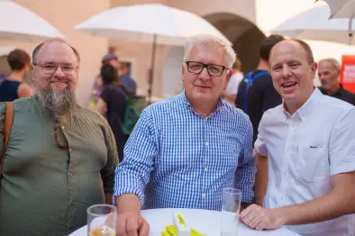 Die Gäste beim Meet & Greet genossen den warmen und informativen Sommerabend im Löwinnenhof*. Mit dabei waren die stp*Plattformobleute Dominik Mesner, Markus Mayer und Daniela Kittel, Sparkassenvorstandsdirektor Helge Haslinger, Festspielhaus-Intendantin Bettina Masuch, Vizebürgermeister Matthias Adl, die Tourismus-Profis Stefan Bauer, Gabriele Backknecht und Andreas Purt, Archäologe Ronald Risy, NÖ-Museum-Geschäftsführer Matthias Pacher, die Architekten Paul Pfoser und Günther Hintermeier, die Künstler Andy Fränzl und Eva Wannerer und, und, und...