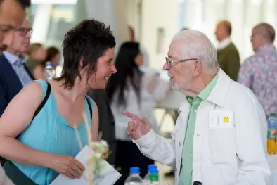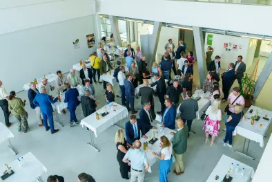 Der Abend endete mit einer geführten Tour durch die Räumlichkeiten der Universität. Beim anschließenden gemütlichen Ausklang – begleitet von herzhaftem Gulasch, erfrischenden Getränken und legendären Schaumrollen – wurde weiter diskutiert, genetzwerkt und gelacht.