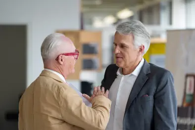 In einem kurzweiligen Rückblick führten Johannes Zederbauer und Herbert Grüner durch zwei Jahrzehnte NDU – mit Highlights, Meilensteinen und Einblicken in aktuelle Forschungsprojekte. Besonders spannend: Das neue Doktoratsprogramm „Value through Design“, das ab dem Wintersemester 2025/26 startet.