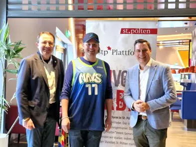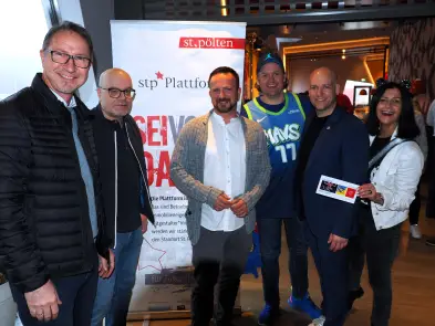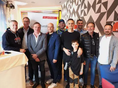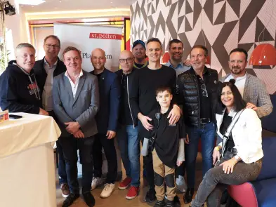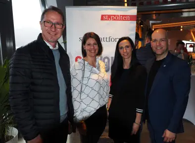 Beim sportlichen Erfahrungs- und Gedankenaustausch dabei: stp*Plattform-Obmann Dominik Mesner, Ulli Mesner, Marketing St. Pölten-Geschäftsführer Matthias Weiländer, Tourismusdirektor Stefan Bauer, Thomas Bertl, Neo-Plattformmitglied Lukas Grigorescu, Christian Groissmaier, Daniel und Christina Lohninger, Mario Zimmel, Marketing-Fachfrau Karin Schreylehner, St. Pölten-Gesicht Katrin Mayer. Stark vertreten war auch die große SKN Famile mit Stefan Worenz, Martin Eckelbacher, Willi Schmaus, Kathi Ehart, Gunter Spitzhütl, Stefan Cizek sowie Gerhard und Tobias Weber. Bürgermeister Matthias Stadler ließ sich das Spektakel nicht entgehen, wie auch die Gemeindevertreter Heinz Hauptmann und Neo-Papa Mario Burger sowie Florian Gleiss vom Veranstaltungsservice und Rathaussprecher Thomas Kainz.