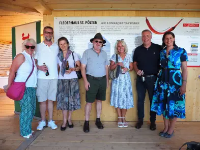 Es war ein chilliger und interessanter Netzwerkabend, bei dem die vielen Gäste die Hängematten und Hängeliegen ausprobierten, hervorragendes Fingerfood vom Mandas genossen und der Hitze mit viel Mineralwasser und Softgetränken trotzten. Bärnstein, Egger-Bier oder Hauptstadtwein wurde dann zu später Stunde genossen.